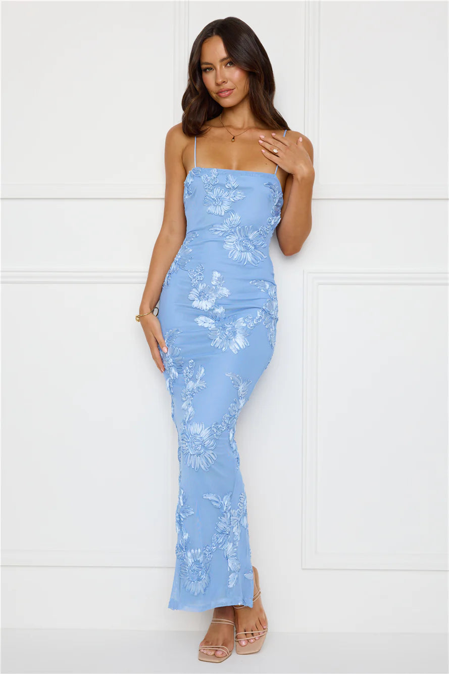 Enter the party and impress in the Amber Zest Mesh Maxi Dress. Featuring a gorgeous mesh design with embroidered details. Style with heels and curls for all the likes.