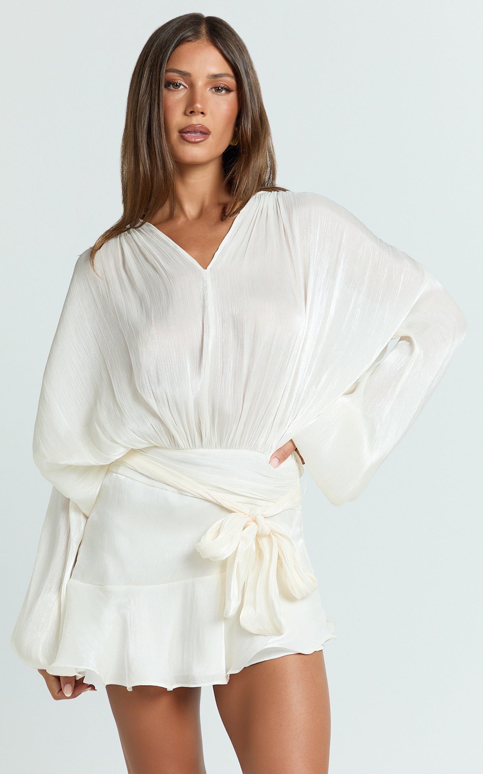 The Carmela Mini Dress in Off White features a tie neck and ruffle skirt that bring feminine movement and charm, while the fitted waist flatters your shape. The flowy hem adds soft swish - perfect for dance floors, long lunches and everything in between. Style it your way: add pendant necklaces for a chic finish or layer sheer textures for after-dark allure. Carmela is your go-to for event season - ideal for bride-to-be moments, garden parties and any RSVP where you want to glow. The off-white tone pairs effortlessly with raffia accessories and oversized sunglasses for daytime polish, or switch to strappy heels and a scarf-as-belt to elevate the vibe. Effortlessly pretty, endlessly wearable.