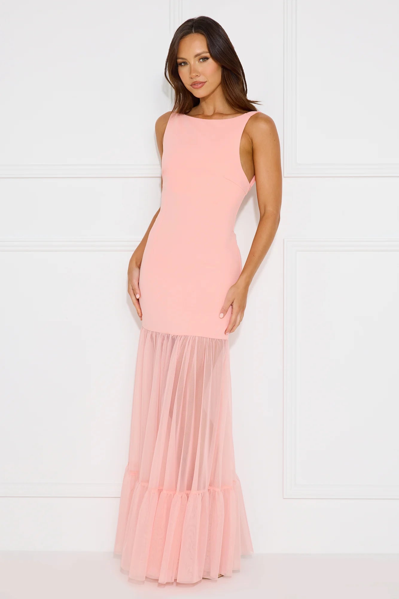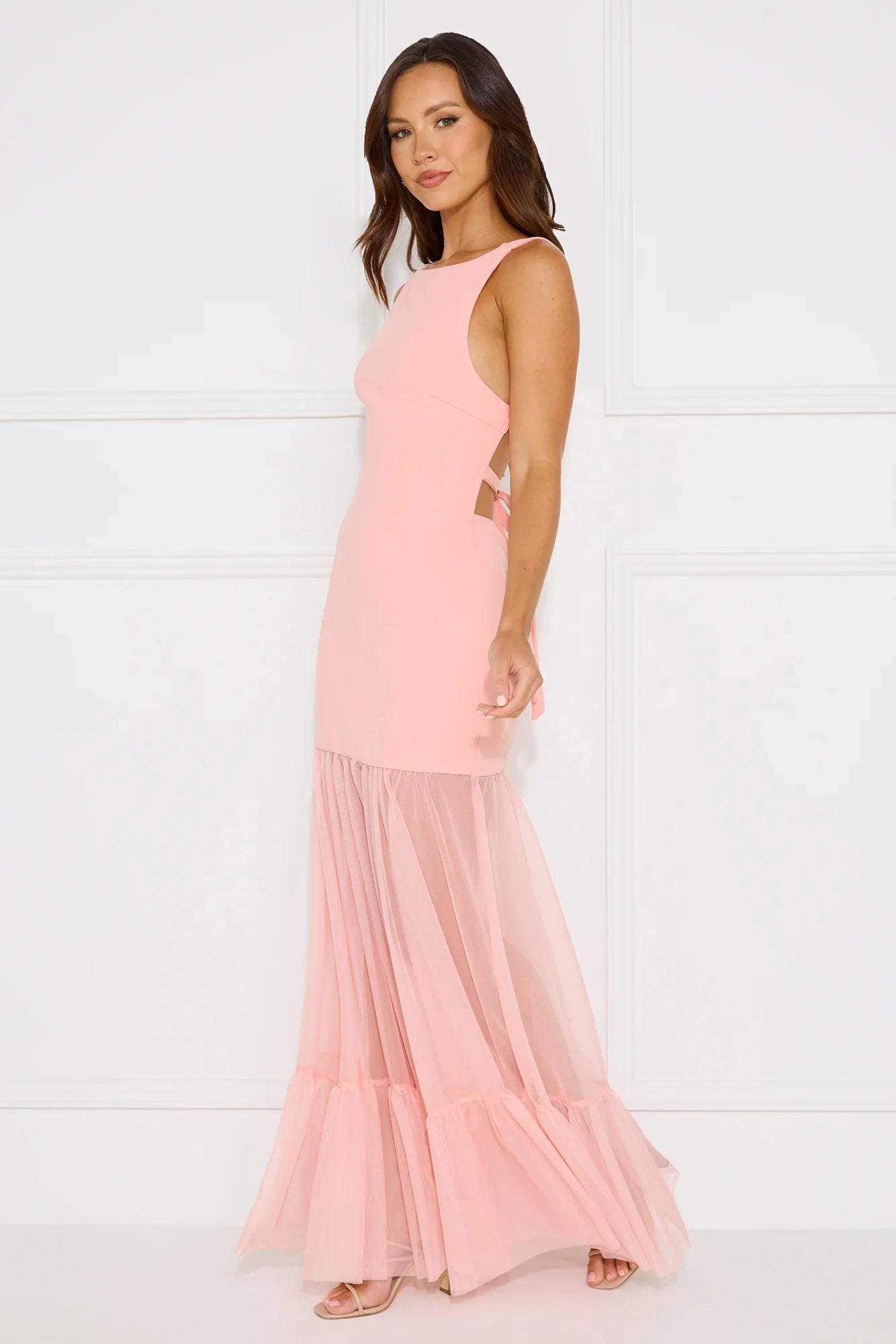 Dress to impress in the Chic Whispers Maxi Dress. Featuring a gorgeous sheer mesh skirt and a tie-up back that'll have the spotlight on you! Style with heels and curls for a 'fit that'll crown you best-dressed!
