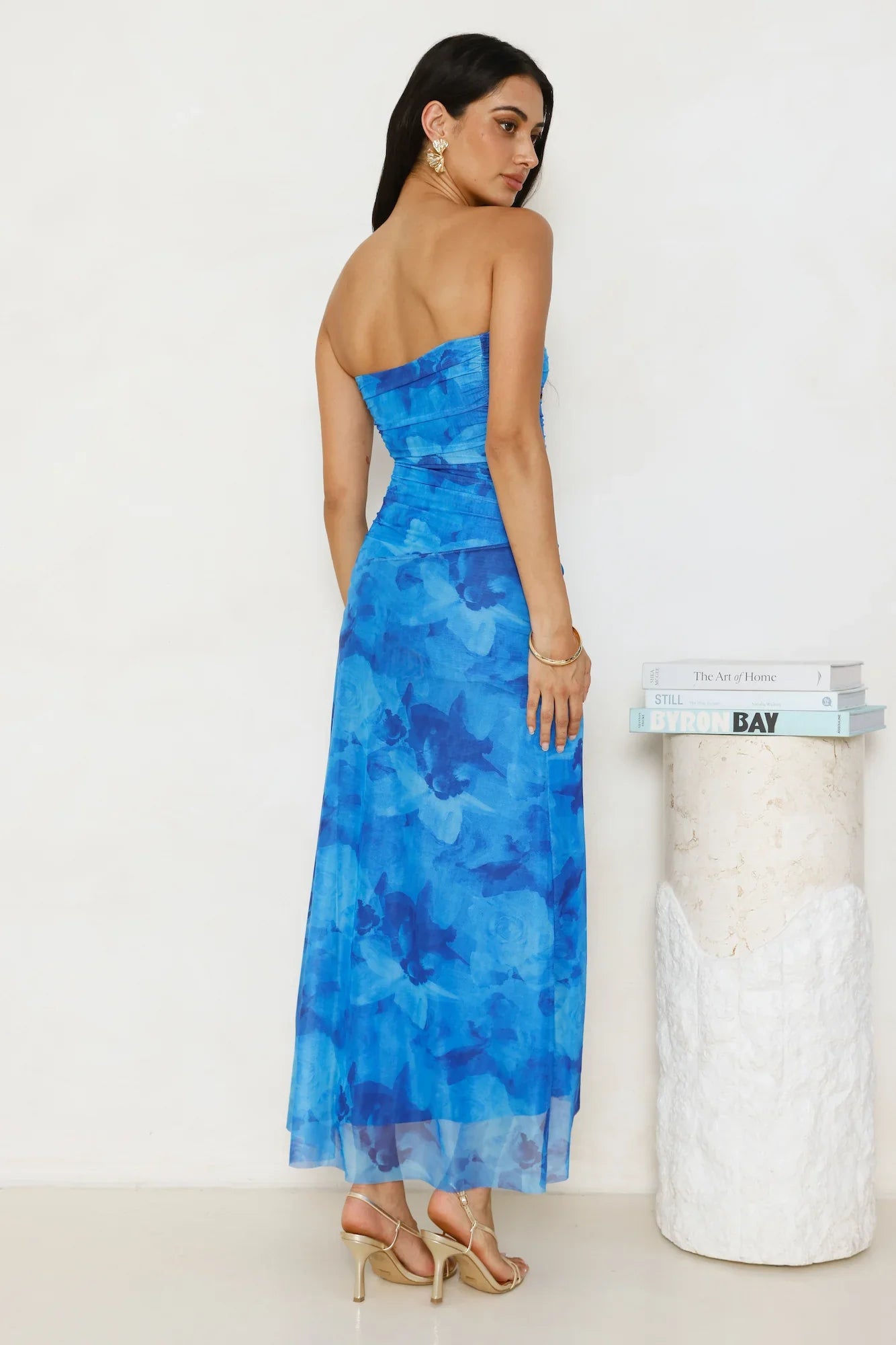 You're going to want to wear this dress to every event. The Dollhouse Daze Strapless Mesh Maxi Dress features a fitted bodice, a straight flowy skirt with a split, and an inner grip. Style with heels and curls!