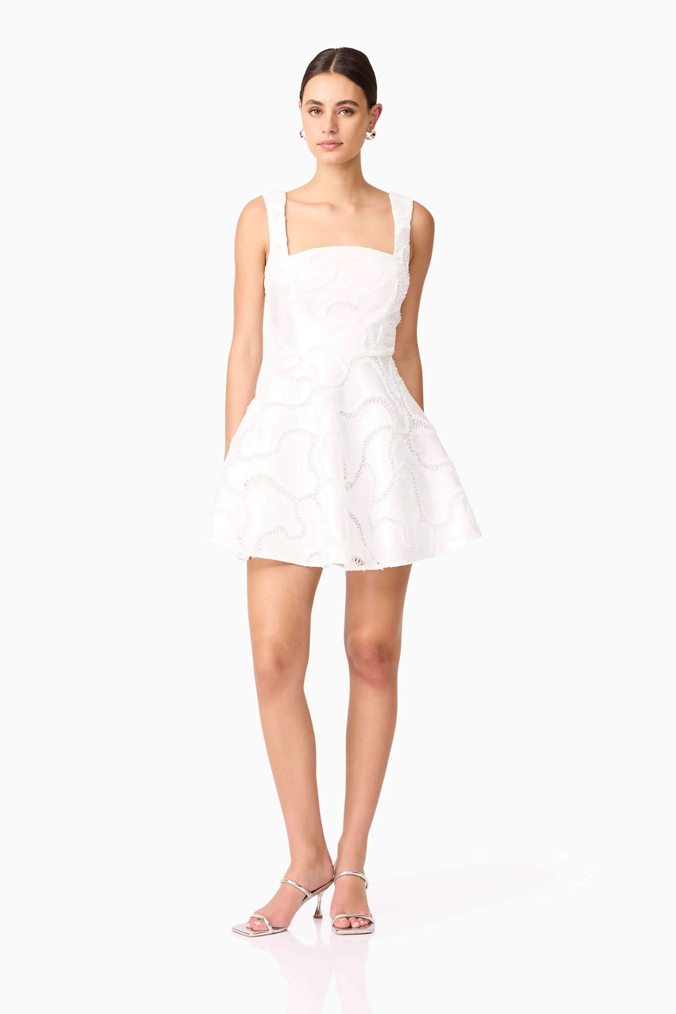 The Elara Beaded Mini Dress in White embodies modern sophistication with a touch of elegance. Designed in a timeless mini fit and flare dress silhouette, this dress accentuates the waist and flows effortlessly into a flattering flared skirt. Perfect for any occasion, whether a cocktail event, brunch, or date night, the Elara dress is an essential addition to your wardrobe.