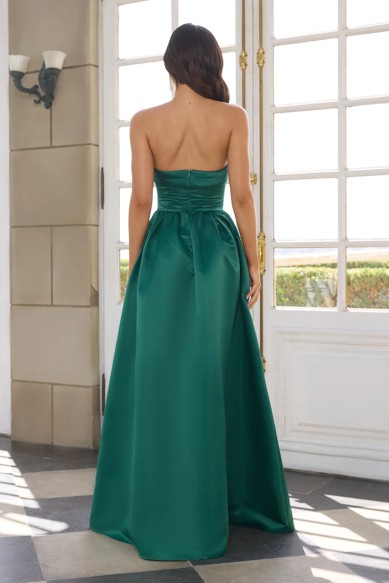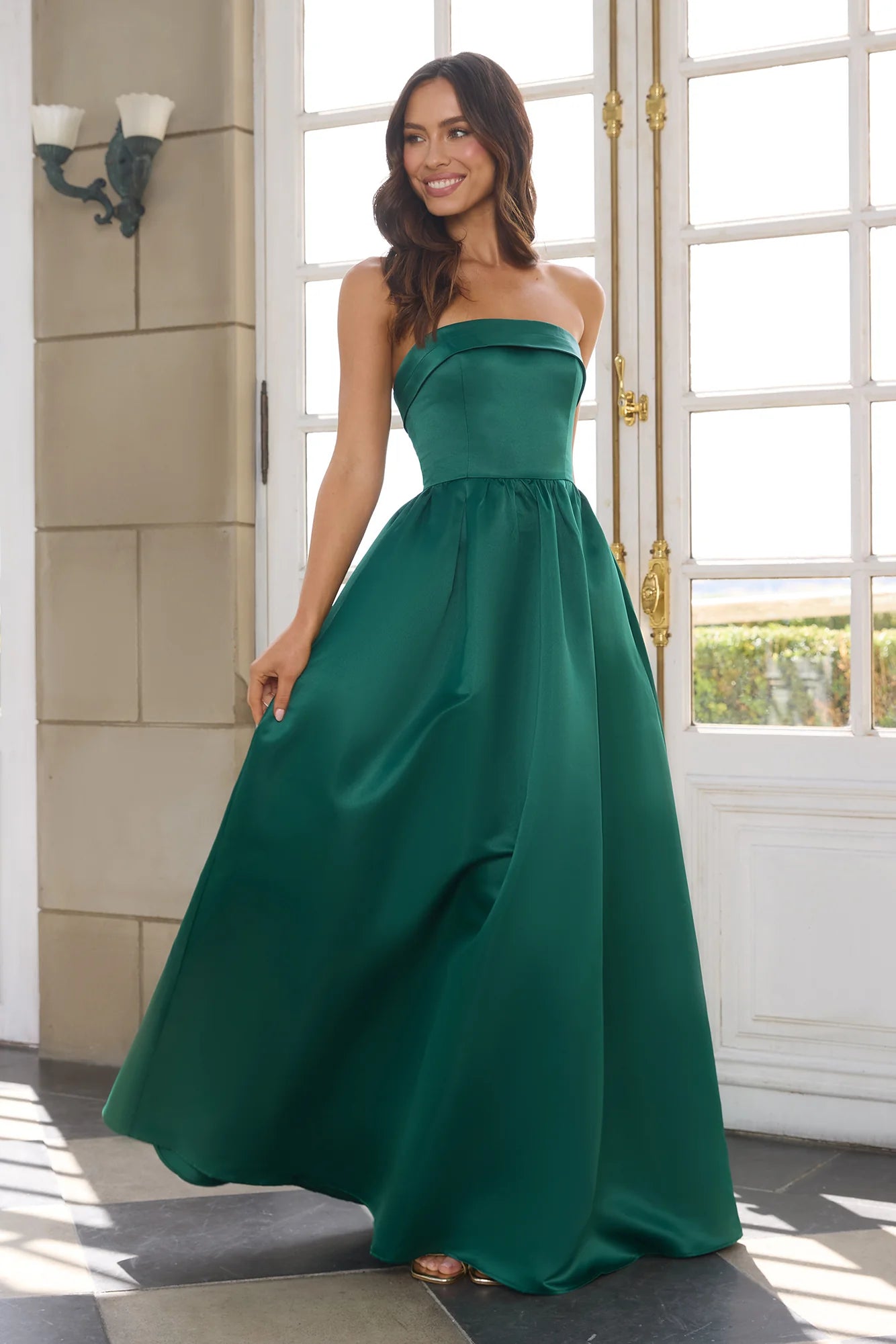 Exclusively designed for the ultimate confidence. The Elegance In Motion Strapless Maxi Dress features a fitted bodice, a folded neckline and a flared skirt - we're in love with this statement design! Style with heels and curls for a fancy event.