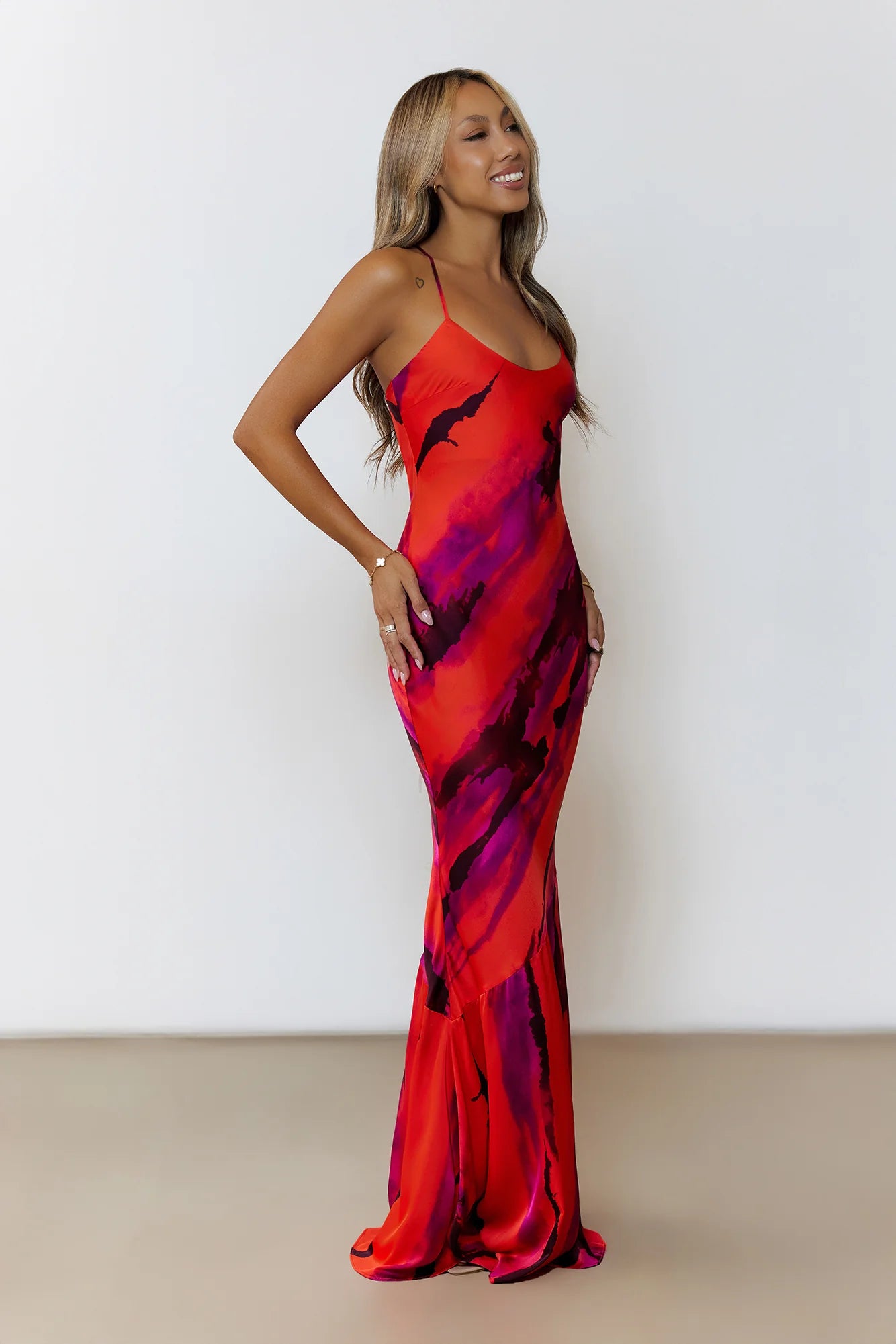 Ignite the moment in the Ember Kiss Maxi Dress. This maxi features a flattering tie-up back and a fluid silhouette that moves like firelight. Perfect for sultry evenings, candlelit dinners, or when you want to leave a lasting impression. Just add gold jewels and a bold lip for full flame effect.