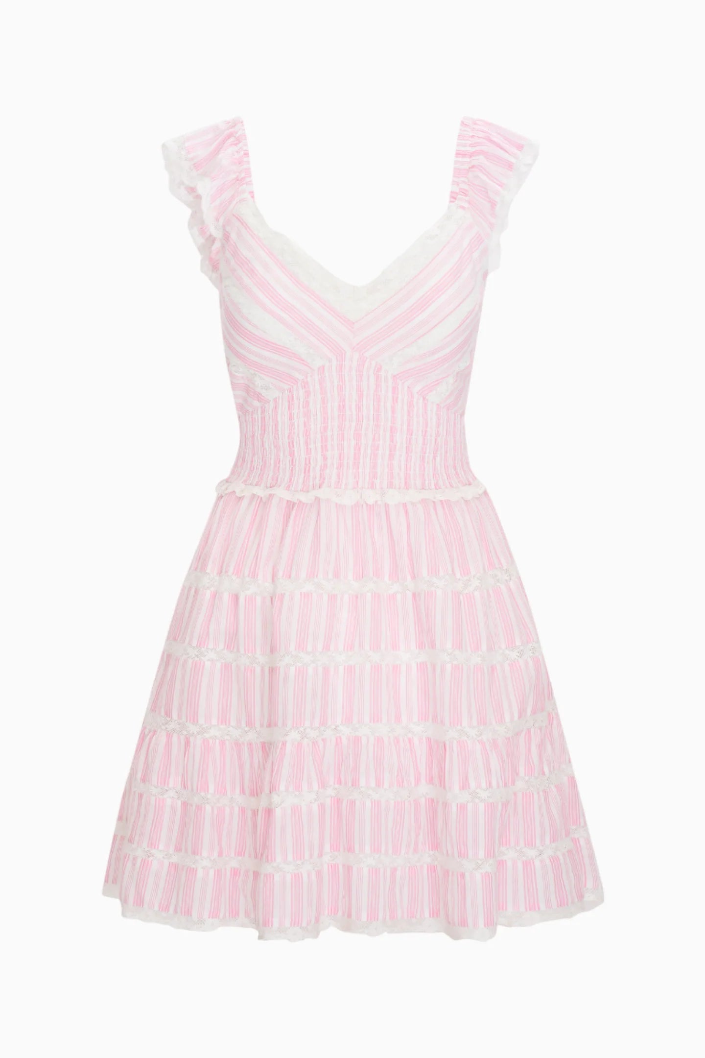 Our beloved Finny Dress arrives for the season as part of our Upcycled Icons Collection, a limited-edition, sustainable capsule featuring our best-selling silhouettes made from remnant LoveShackFancy fabrics. She’s airy, dreamy, and easy to wear. This must-have mini begins with an open v-neck with elasticated flutter sleeves before falling to a smocked waist for a comfortable and a flattering fit. The bodice and skirt feature a sweet medley of lace and embroidery arrangements throughout. This piece is complete with pockets.