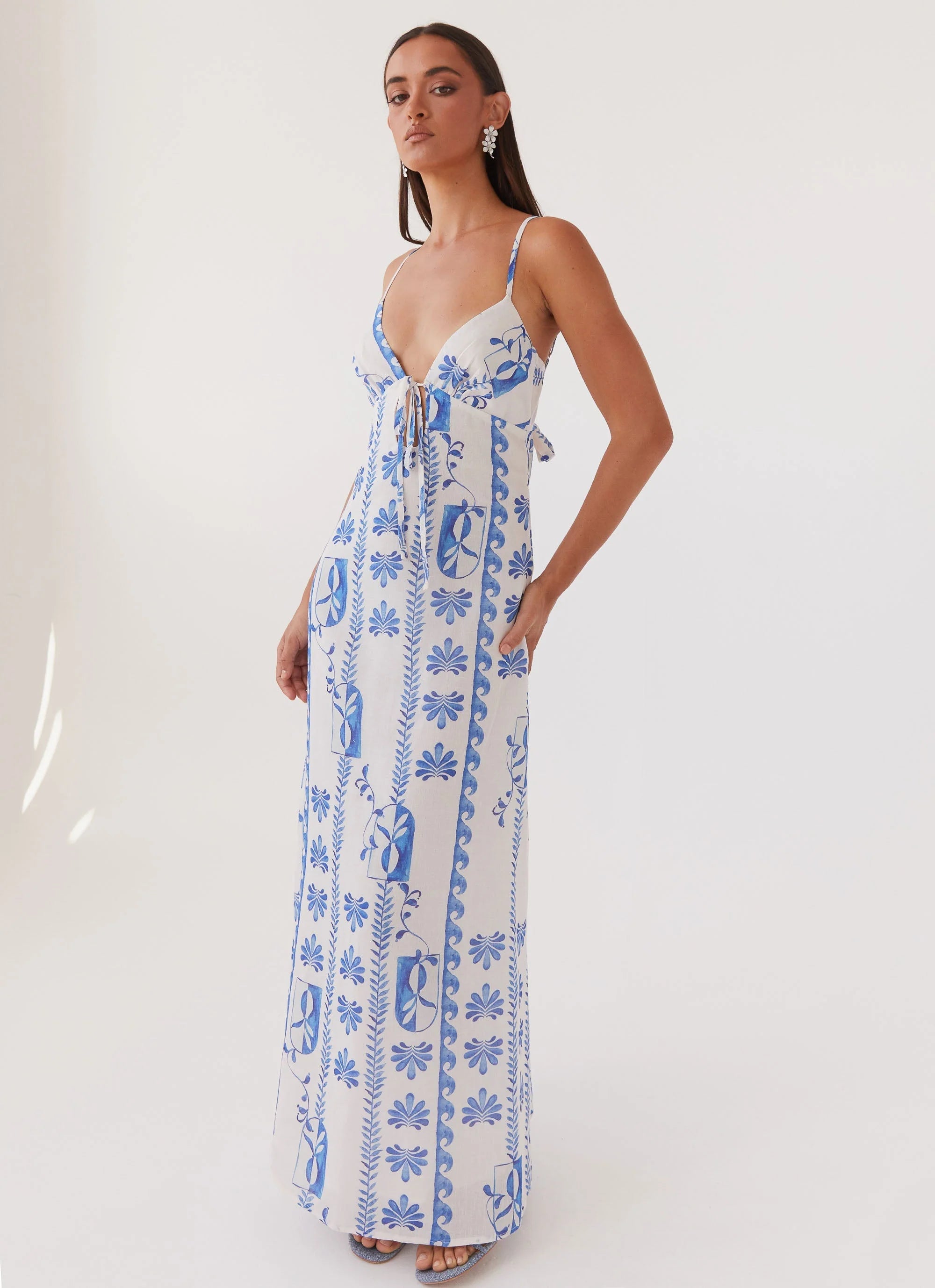 Introducing our Flora Maxi Dress in the exclusive "Floral Wave" print. Crafted for golden skies and balmy nights, this timeless piece exudes elegance and charm. Elevate your style effortlessly with its breezy silhouette, perfect for any occasion. Don't miss out on this refreshing edition!