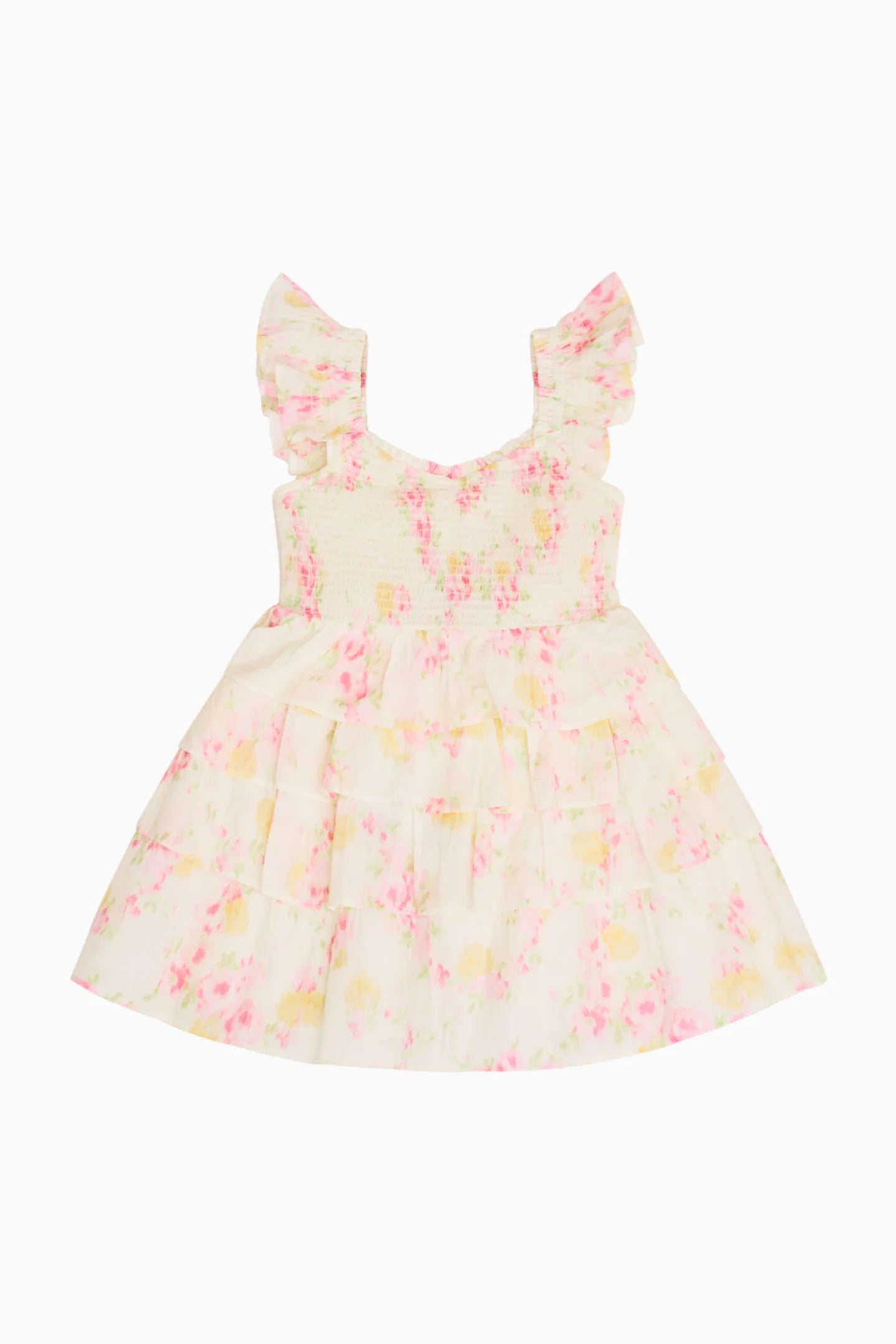 Our littles stun in the Linoette Dress. This pretty frock has tiny flutter sleeves and a multi-tiered skirt giving this piece and airy look and feel.