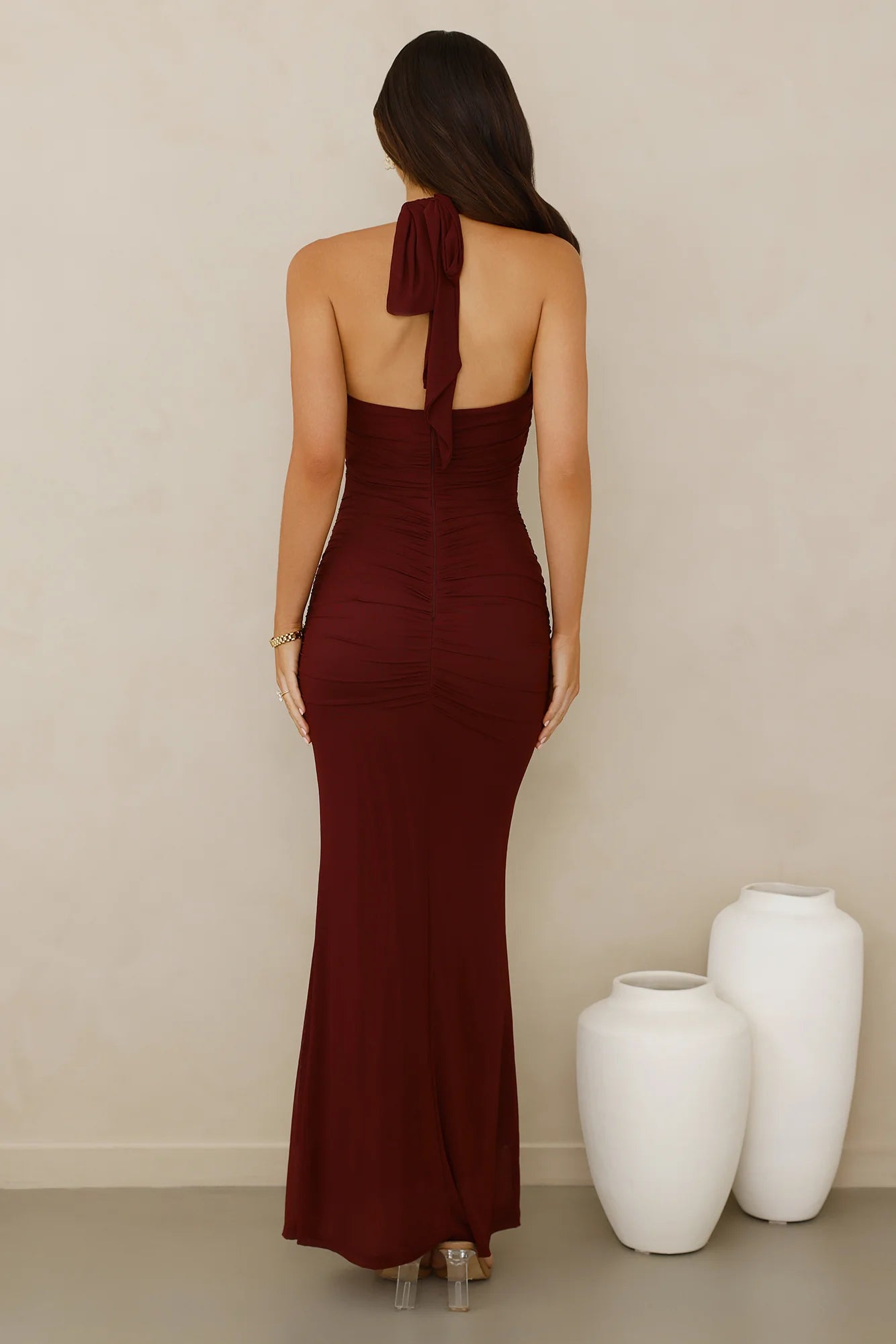 For events that deserve a little extra dazzle, be seen in the Irresistible Style Mesh Halter Maxi Dress. Featuring a mesh silhouette, a halter tie and a sheer bodice. Style with heels and curls.