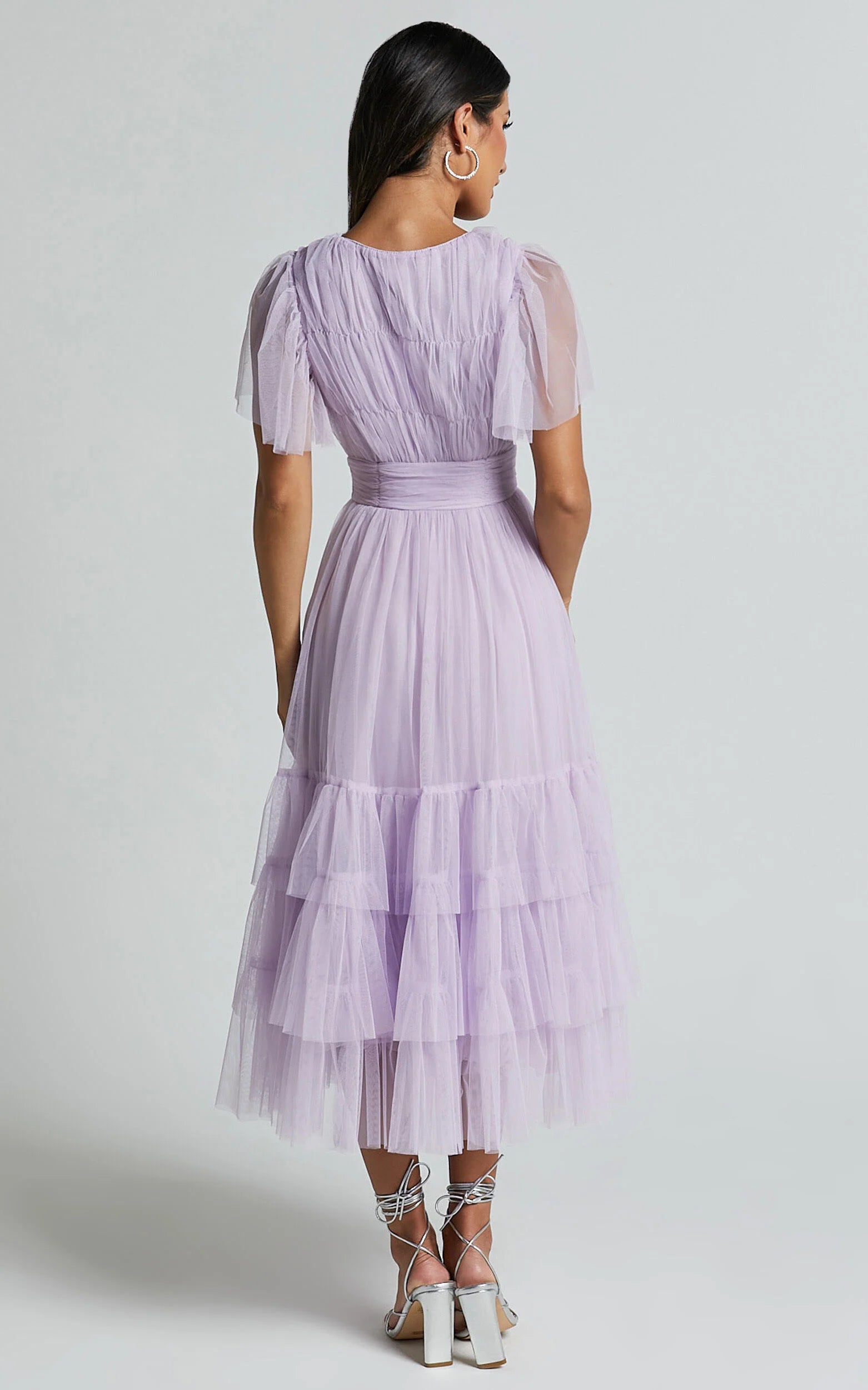 Step into the spotlight and make a statement in our Jiraye Midi Dress - Flutter Sleeve Tulle Plunge Dress in Lilac. This stunning purple A-line dress is perfect for any formal occasion, whether it's a cocktail party or an elegant evening affair. The flutter sleeves add a touch of femininity, while the plunging neckline adds a hint of playfulness. Made from luxurious polyester, this midi dress will have you feeling like royalty all night long. So go ahead and embrace your inner fashionista with confidence and style in our Jiraye Midi Dress - the ultimate choice for those who want to stand out from the crowd.Product Details:A-line midi dressPlunge necklineShort sleevesMade of polyester fabricSuitable for cocktail, formal, and party occasionsSize and FitSize S / 8 length: 120cm / 47.24inMaterial and CareMain Fabric: 100% PolyesterLow / No stretch
