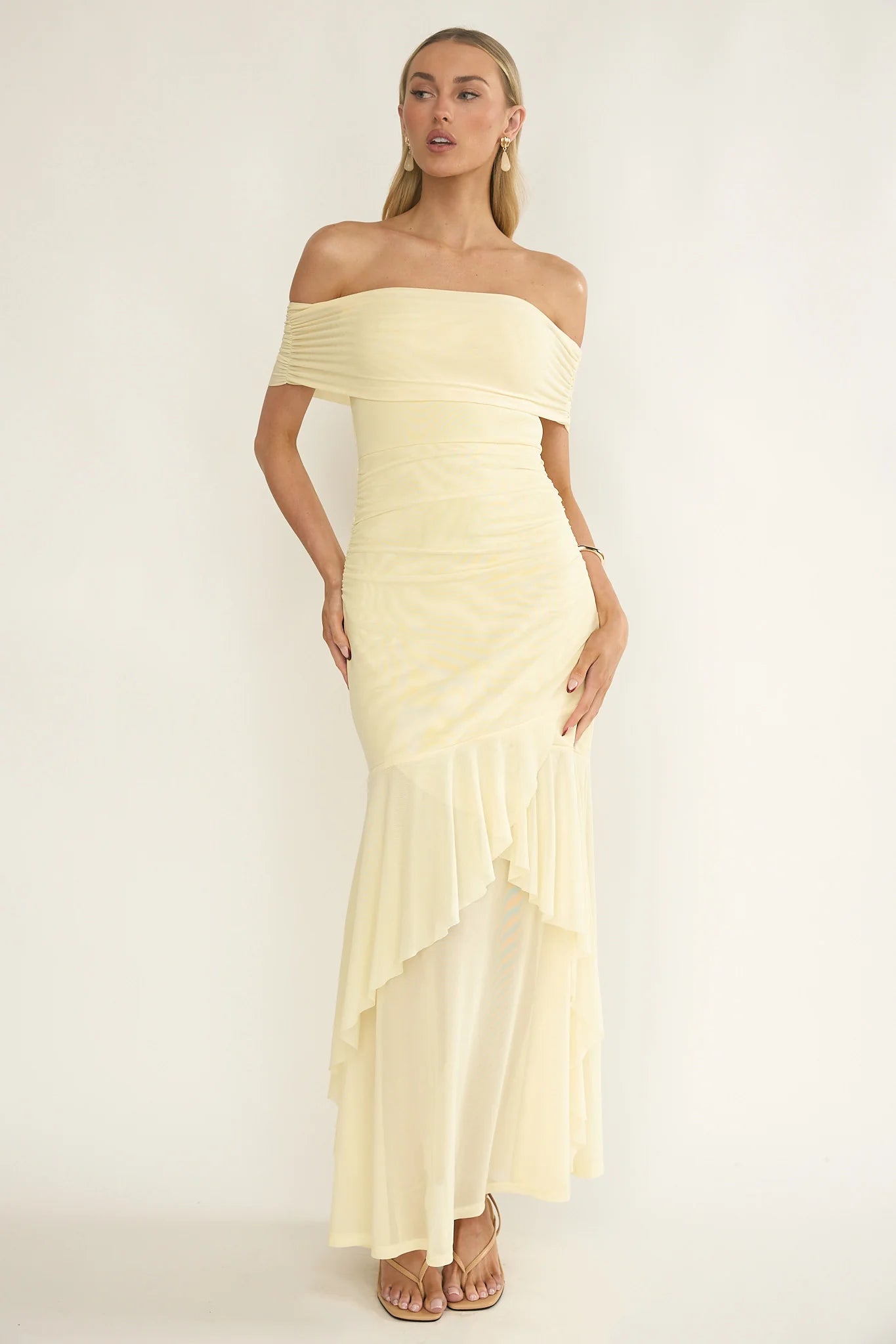 You will feel like a goddess in our stunning Kiarna maxi dress. It features an off-shoulder style and gorgeous, figure-hugging silhouette. It's perfect for a birthday celebration teamed with nude heels and a clutch for a jaw-dropping look.