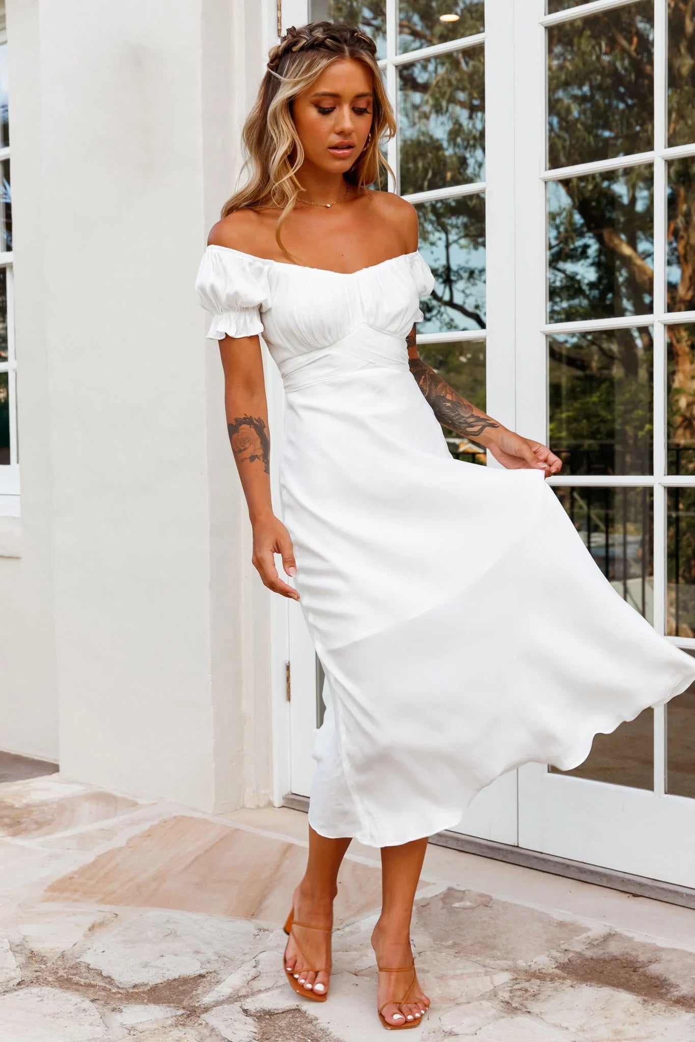 Stop what you are doing because this dress deserves a moment. Jaws will drop when you strut by in our adorable Linka midi dress. Featuring an off-shoulder style and the cutest puff sleeves, we're head over heels! Perfect for a girls' night out paired with strappy heels and statement earrings. Hello, gorgeous!