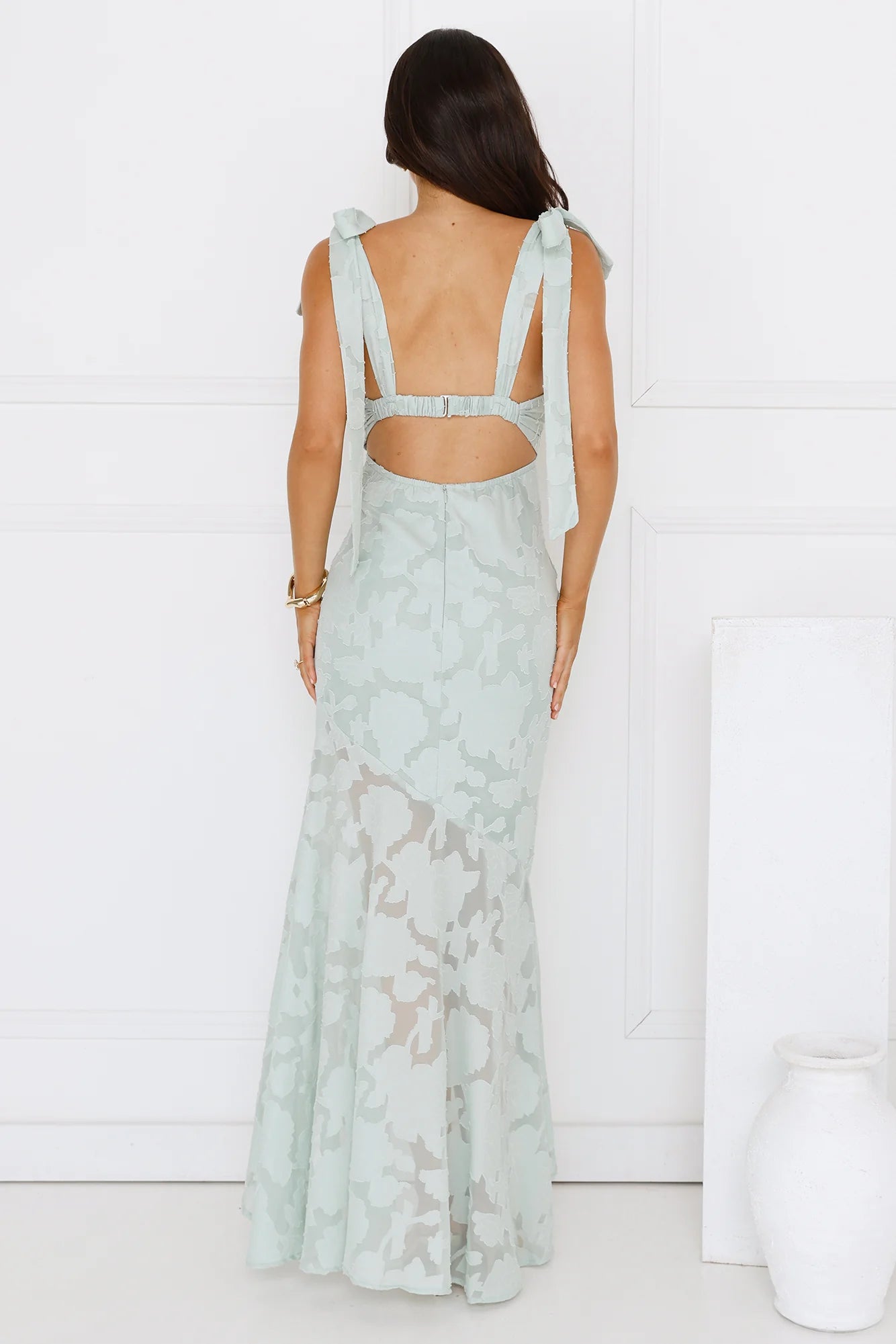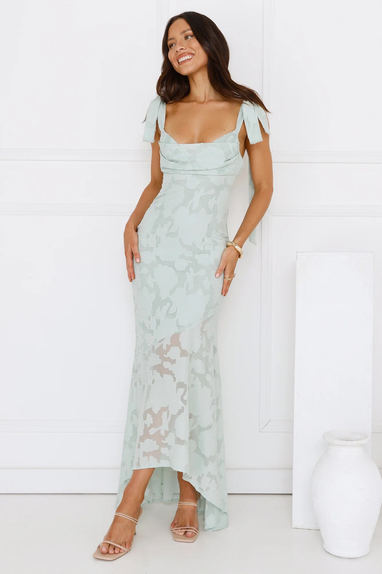 A sophisticated style that's perfect for your next fancy event. The Lunar Lush Maxi Dress features a gorgeous textured pattern, tie-up shoulder straps and an elastic back. Style with heels for all the love on your new 'fit.