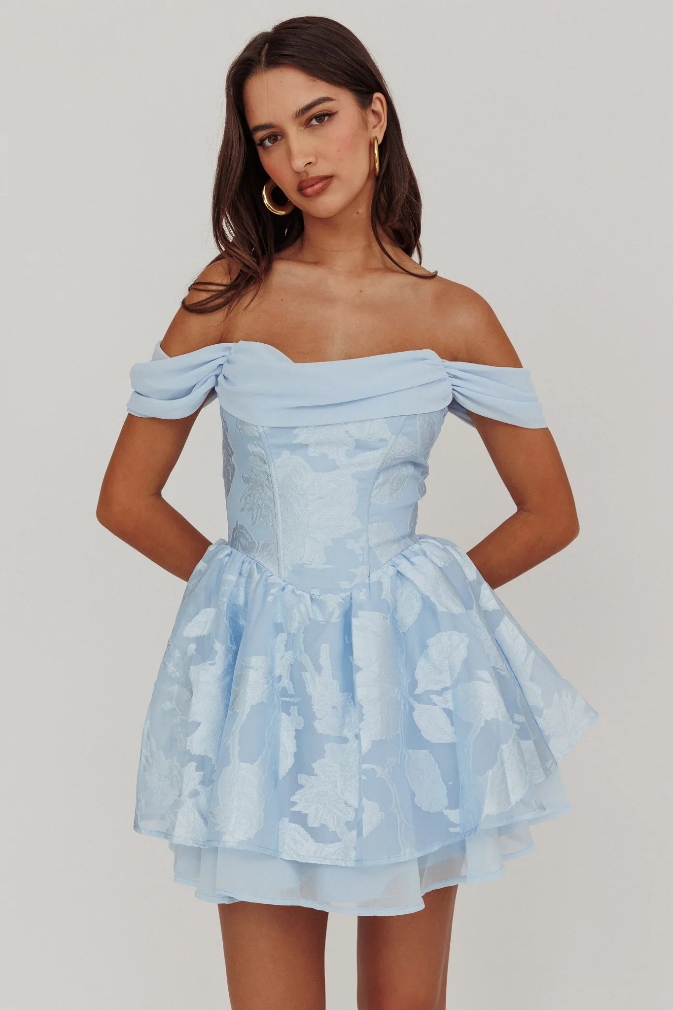 Channel your inner princess with our Lusting mini dress. This dress was destined for royalty with its regal jacquard fabric and draped off-shoulder straps. Perfect for day and evening events, this dress effortlessly transitions from garden weddings to glamorous nights out with your besties.
