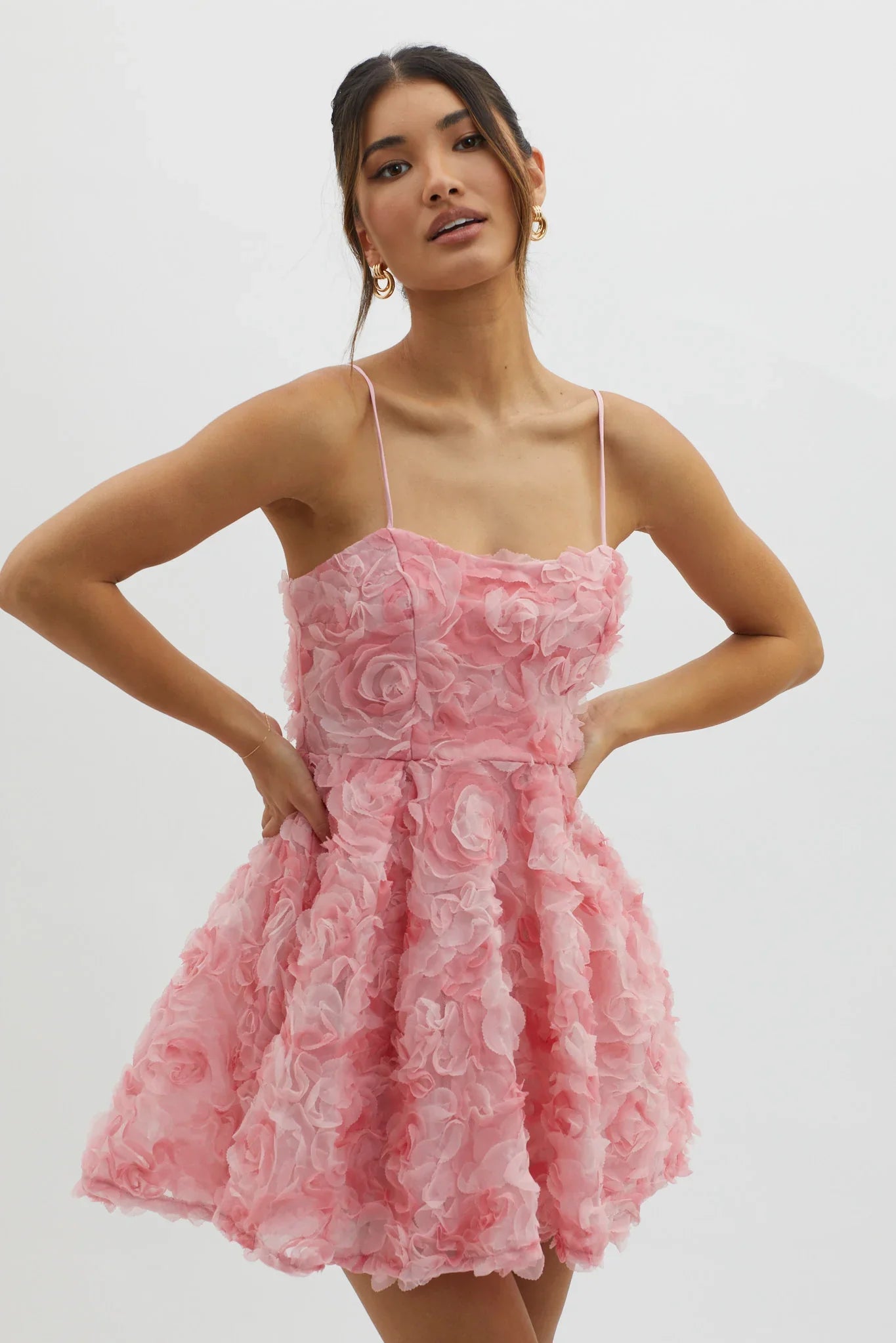 Hello, gorgeous! You will turn heads in our pretty Mariela mini dress. We are in love with the floral mesh embellishment throughout! It's perfect for a garden wedding or birthday celebration. Team it with strappy, tie-up heels and a clutch for an unforgettable look.