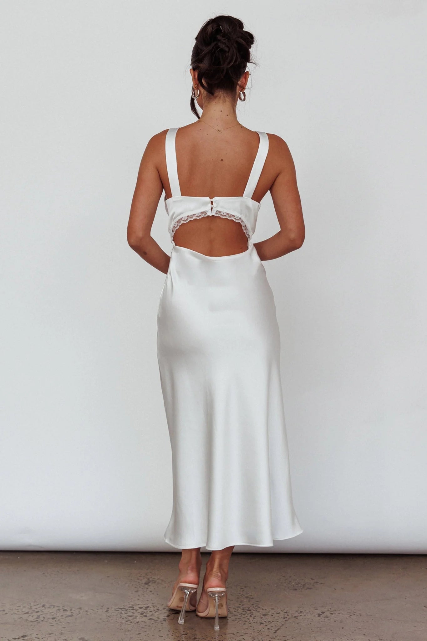 Steal the show in our gorgeous Nyah midi dress. Featuring the sweetest lace trim and cut-out back, it's perfect for a bridal shower or romantic dinner date. Team it with mules and a purse for an unforgettable look.