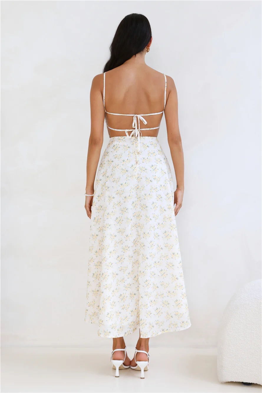 Isn't she dreamy? The Orchid Kiss Maxi Dress features a gorgeous floral print, an open tie-up back and a flowy skirt. Style with flats and beachy waves for a 'fit we love.