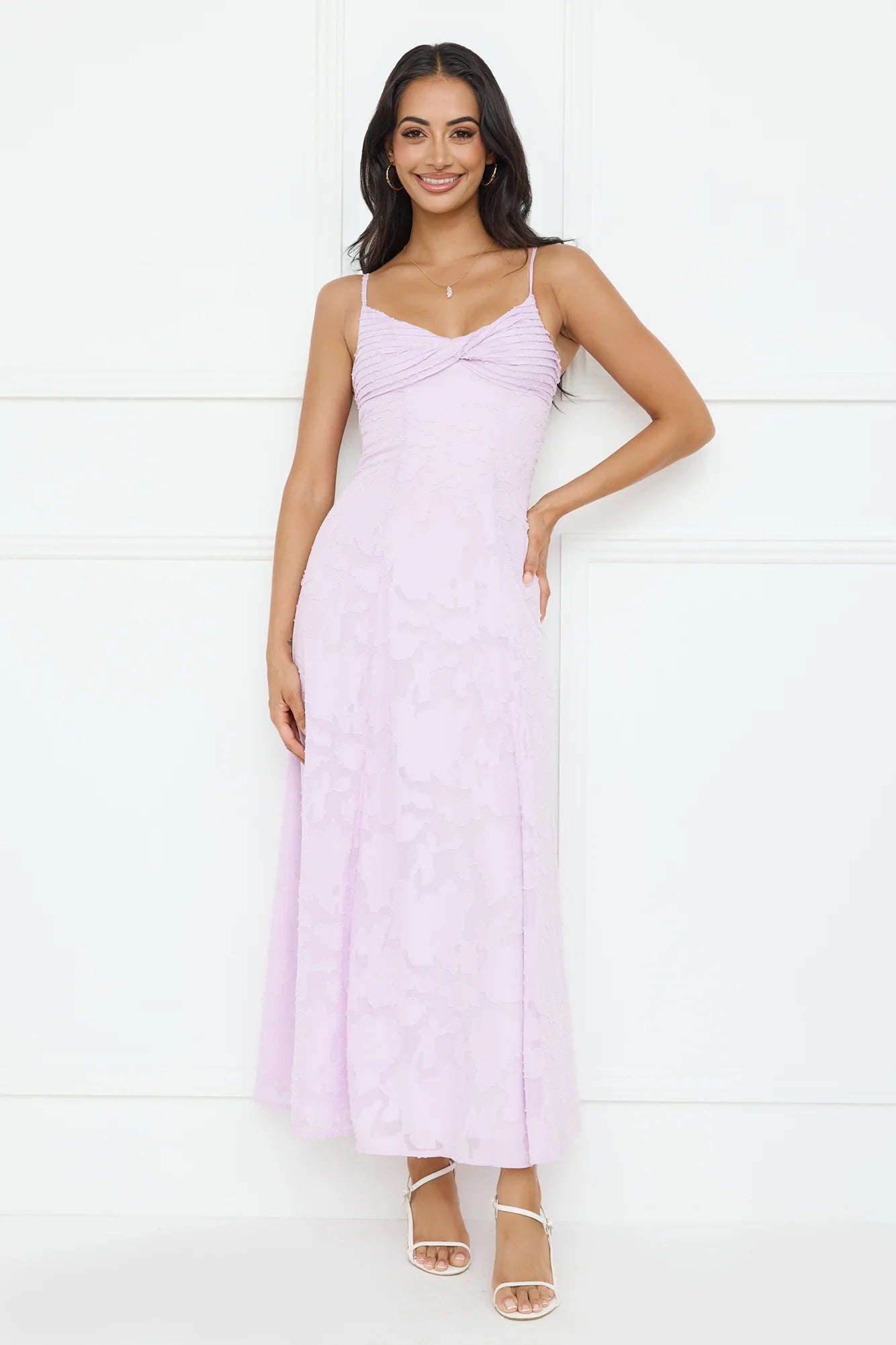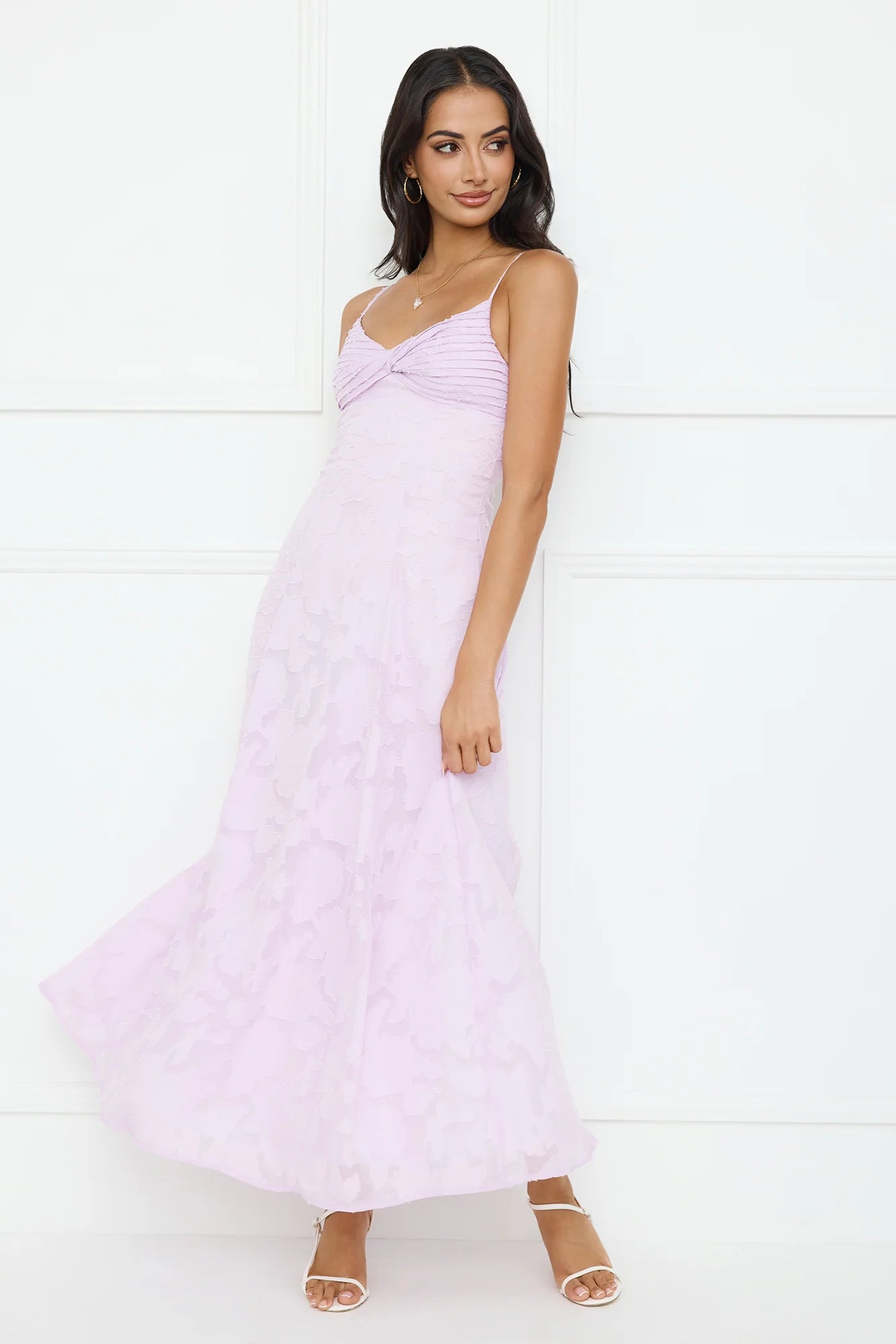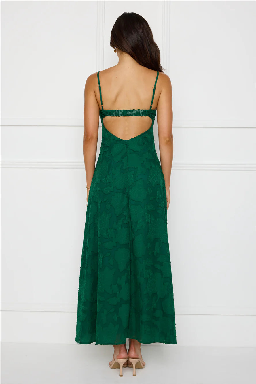You're event ready now, lovely. Style the Pine Blossom Maxi Dress to impress. Featuring a pleated top, an elastic back and a gorgeous textured print. Style with heels and curls for all the likes!