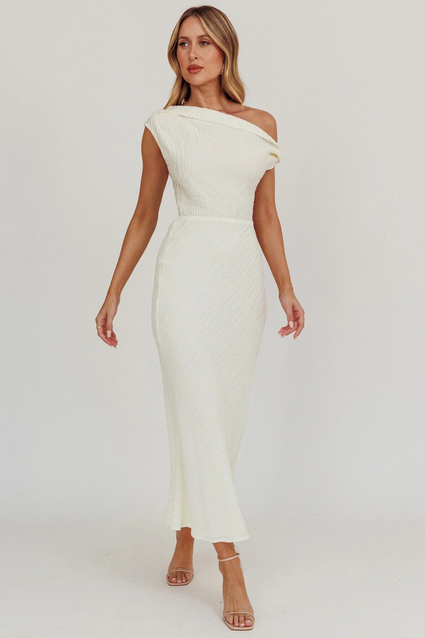 Designed for the stylish, our Play Date midi dress is bound to leave an unforgettable impression. Featuring a luxe textured fabric and asymmetric off shoulder neckline, it's the perfect balance of classy and style! Wear it to formal functions or special events! Highlight your personal style by pairing this dress with your signature jewelry pieces.