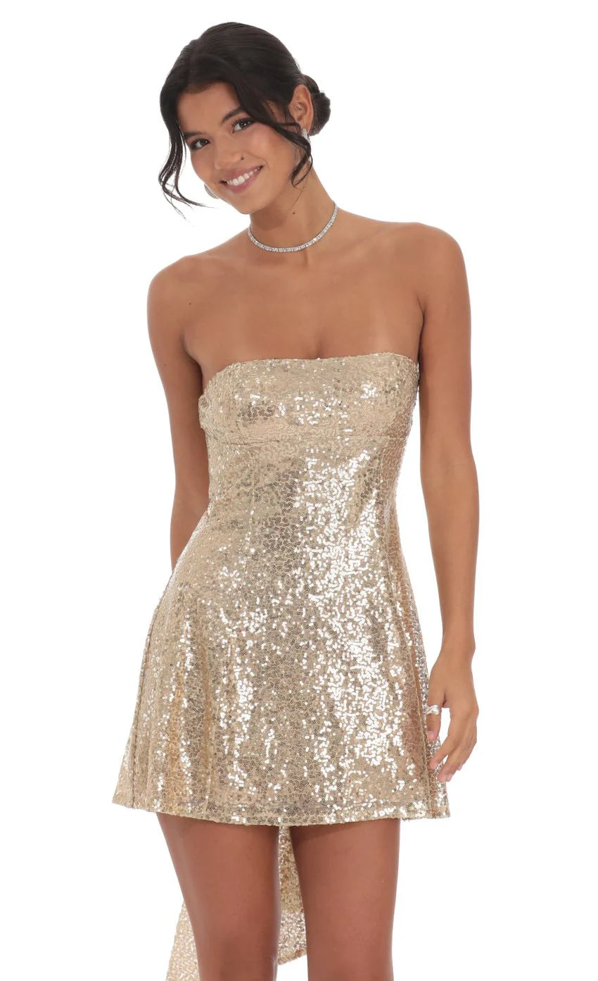 Designed in Los Angeles- Mini Length- Zipper closure- Fully lined- Sheer- Made in sequin fabric- Hand wash coldModel is wearing a size small that measures 23in/58cm in lengthSlight modifications might be made to improve garment quality.Handling the garments with care, hand-washing and air-drying is strongly recommended.