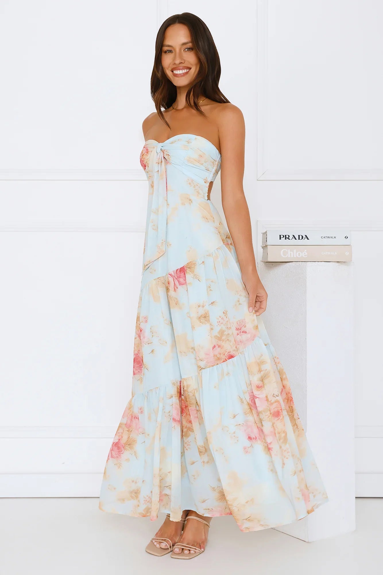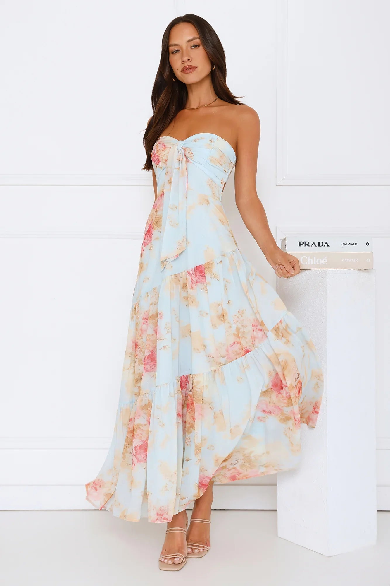 Float through your day in the She’s the Blueprint Strapless Maxi Dress. Featuring a soft print, tied neckline, and a flowy skirt that moves with you, this piece is the epitome of romantic charm. The elastic back and inner grip provide a secure fit, perfect for garden parties, winery dates, or dreamy afternoons in the sun. Style with loose waves and strappy sandals to complete the look.