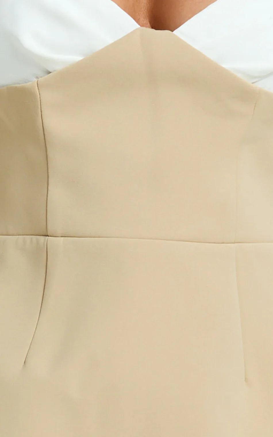 The neutral tone of the Simona Mini Dress pairs perfectly with Euro summer style, think sleek gold hoops and strappy sandals for instant vacation energy, or layer on an oversized blazer for elevated city nights.