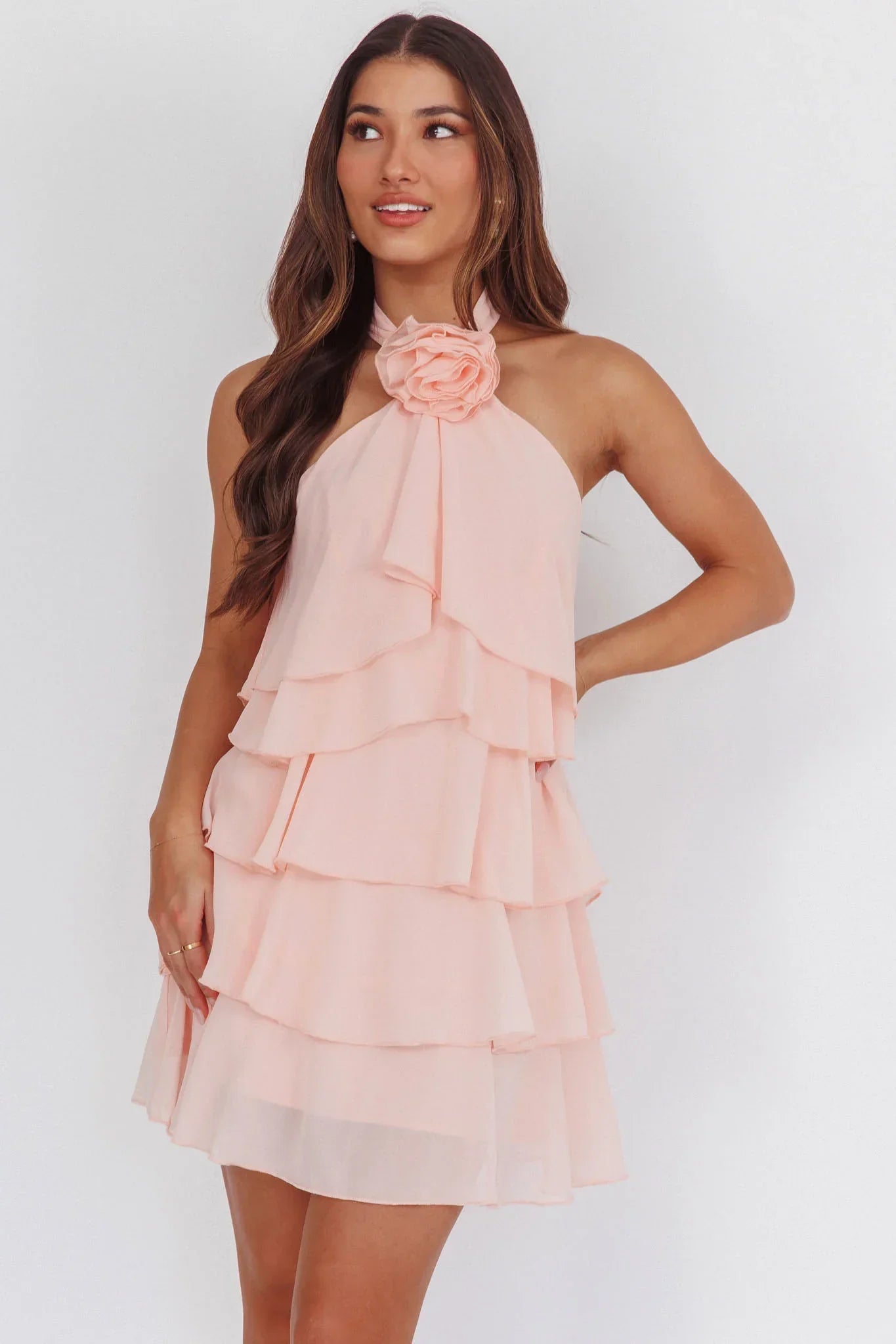 Make a statement in our gorgeous Southern Belles mini dress. It features a halterneck design with the sweetest layered ruffles. It's just what you need for homecoming or a special occasion. Team it with strappy heels and a purse for a look that will turn heads.