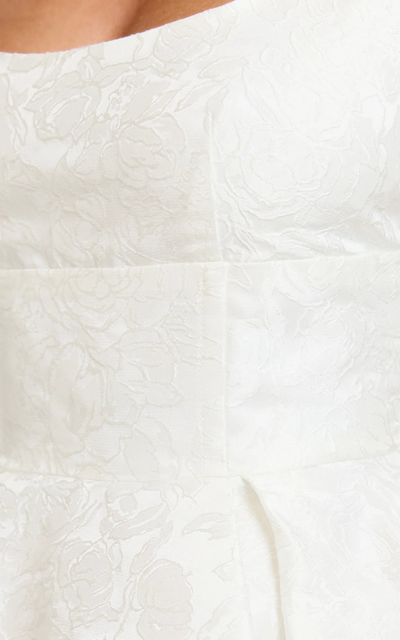 With its elegant white hue and waist-defining silhouette, this dress beautifully accentuates your curves and creates an effortlessly chic look. Complete the romantic vibe by pairing it with bow-detailed pumps and a mini evening bag.