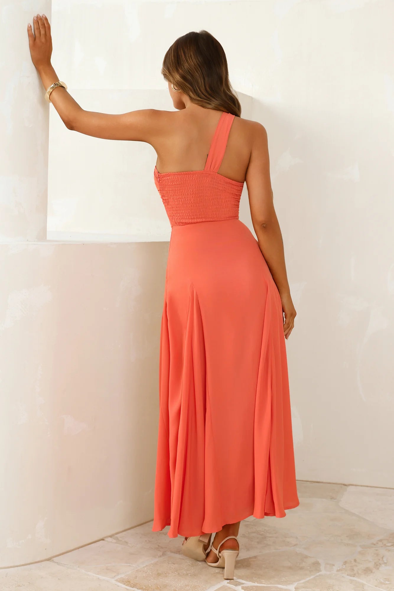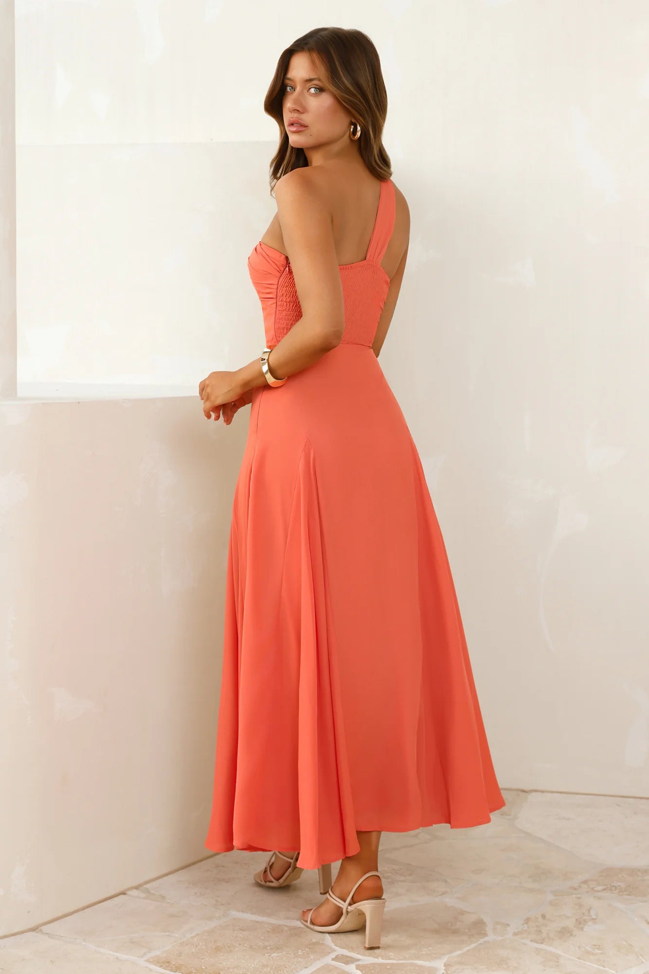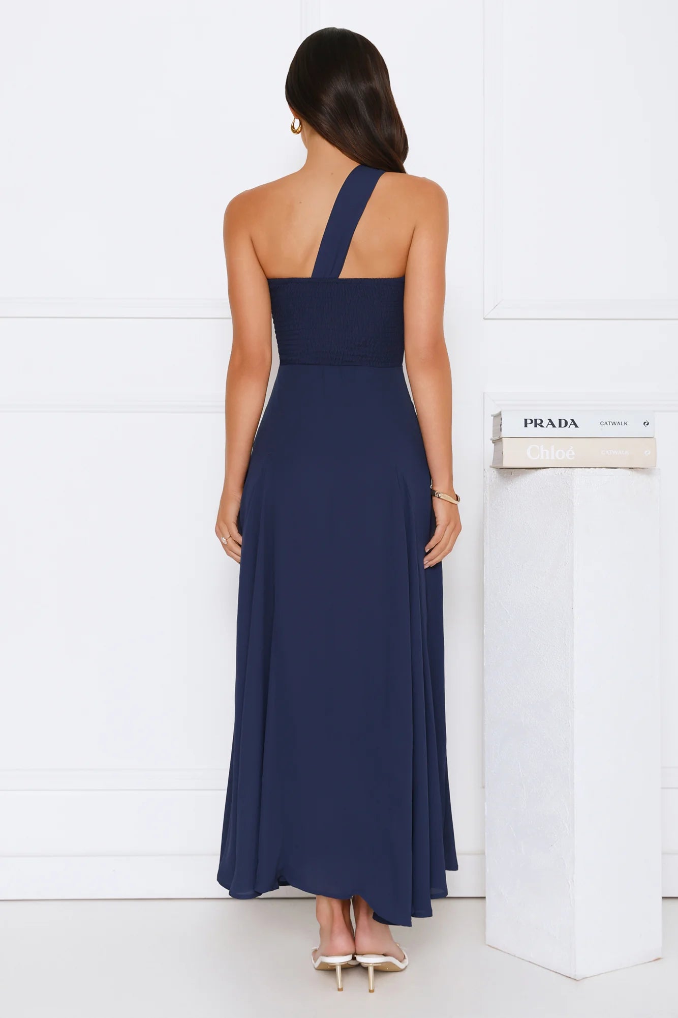 Red carpet energy, no invite needed. The Styled Like A Star One Shoulder Maxi Dress brings glam with an effortless twist. Featuring a sleek one-shoulder neckline adorned with gold hardware detailing, it’s designed to make a statement. The flowy skirt moves with you, while the elastic back keeps things comfy all night long. Slip into this beauty and serve star power—because being iconic is kind of your thing.
