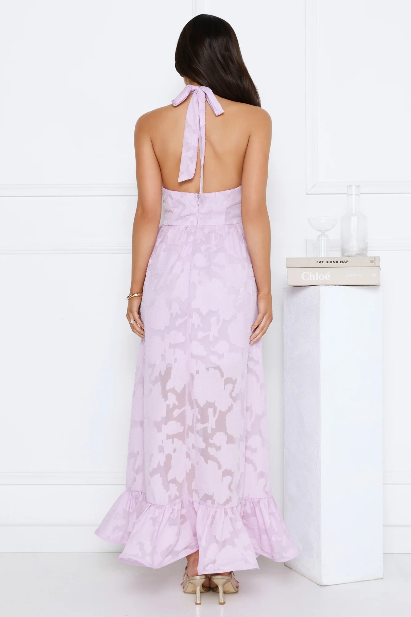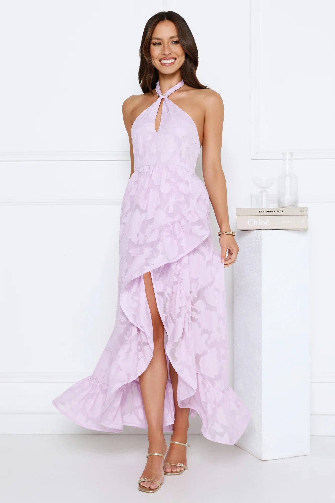 Bring the sunshine in the Sunbeam Shell Halter Maxi Dress, featuring a flattering halter neckline, textured print, wrap-style flowy skirt with a flirty front split, and a frill hem that moves with every step.