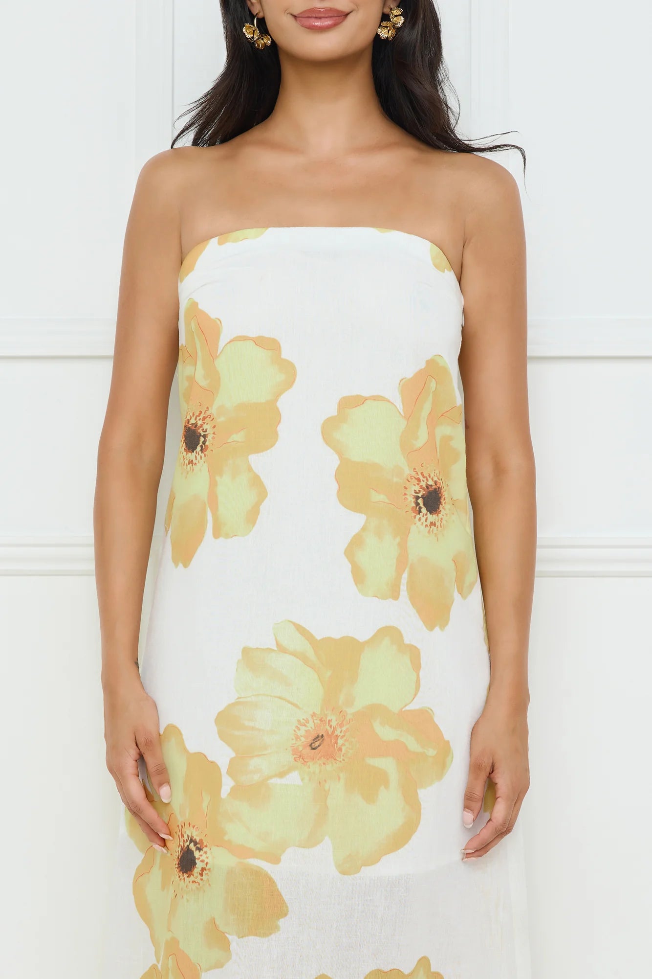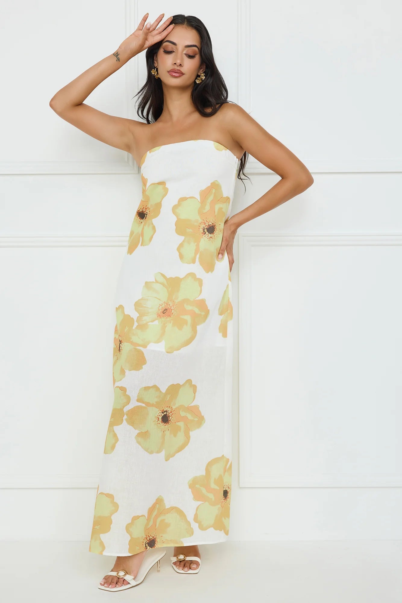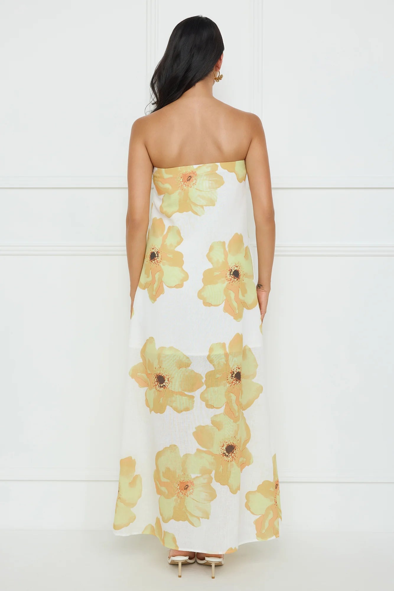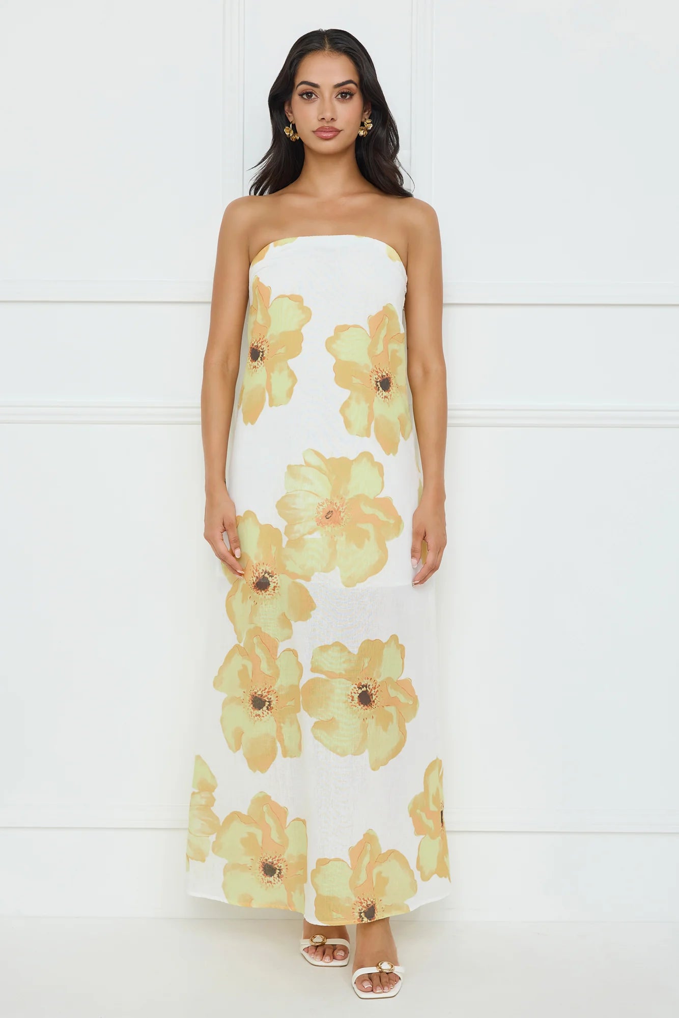 For days that deserve a little style. The Sunlight’s Embrace Strapless Maxi Dress features a gorgeous tent-style silhouette with an elastic neckline and a bright print. Style with sandals!