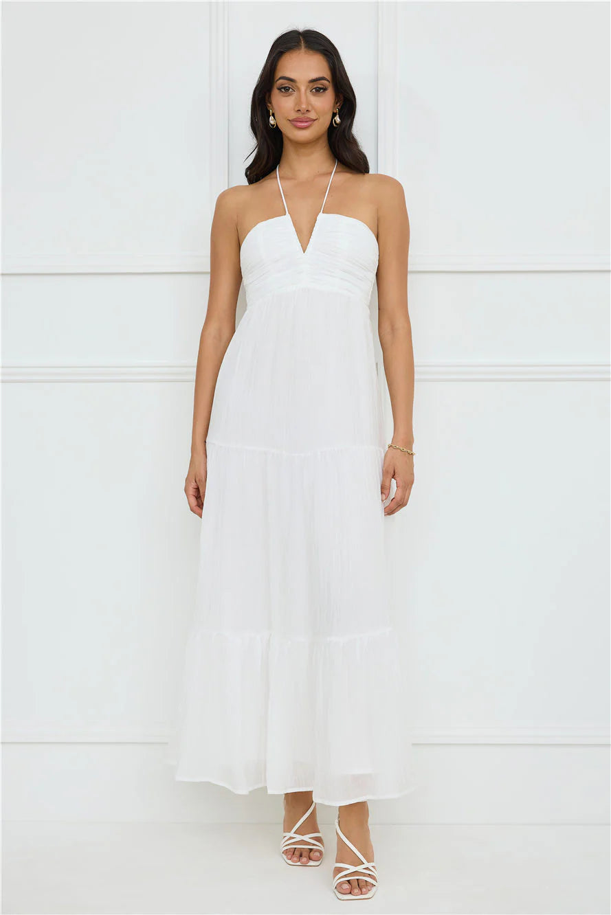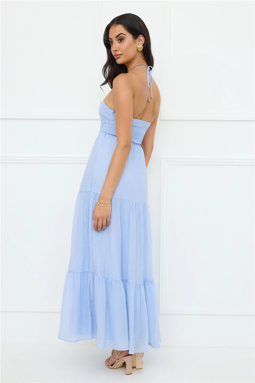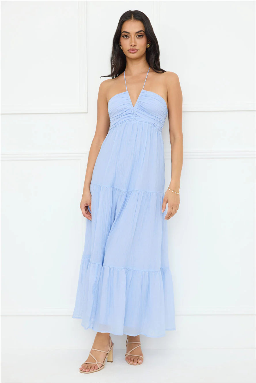 For sun-filled days, be seen in the Sunshine Escape Halter Maxi Dress. Featuring a V-neckline, a halterneck and a gorgeous flowy skirt. Style with sandals and curls.