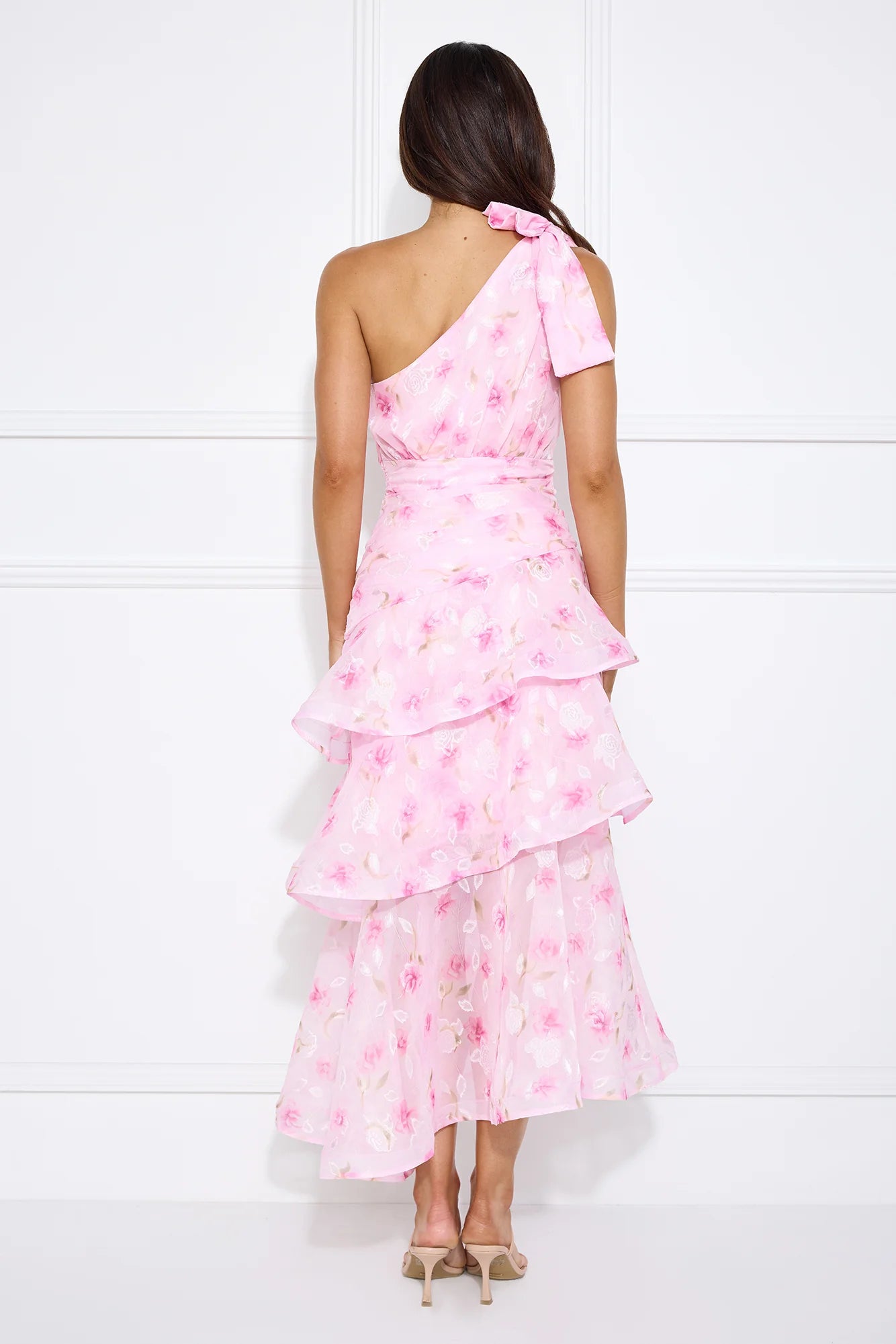 Earn your style points in the Sunshine Eyes One Shoulder Maxi Dress. Featuring a tie-up shoulder strap and a gorgeous tiered frill flowy skirt. Style with sandals for a look that will take you through the day looking gorgeous.