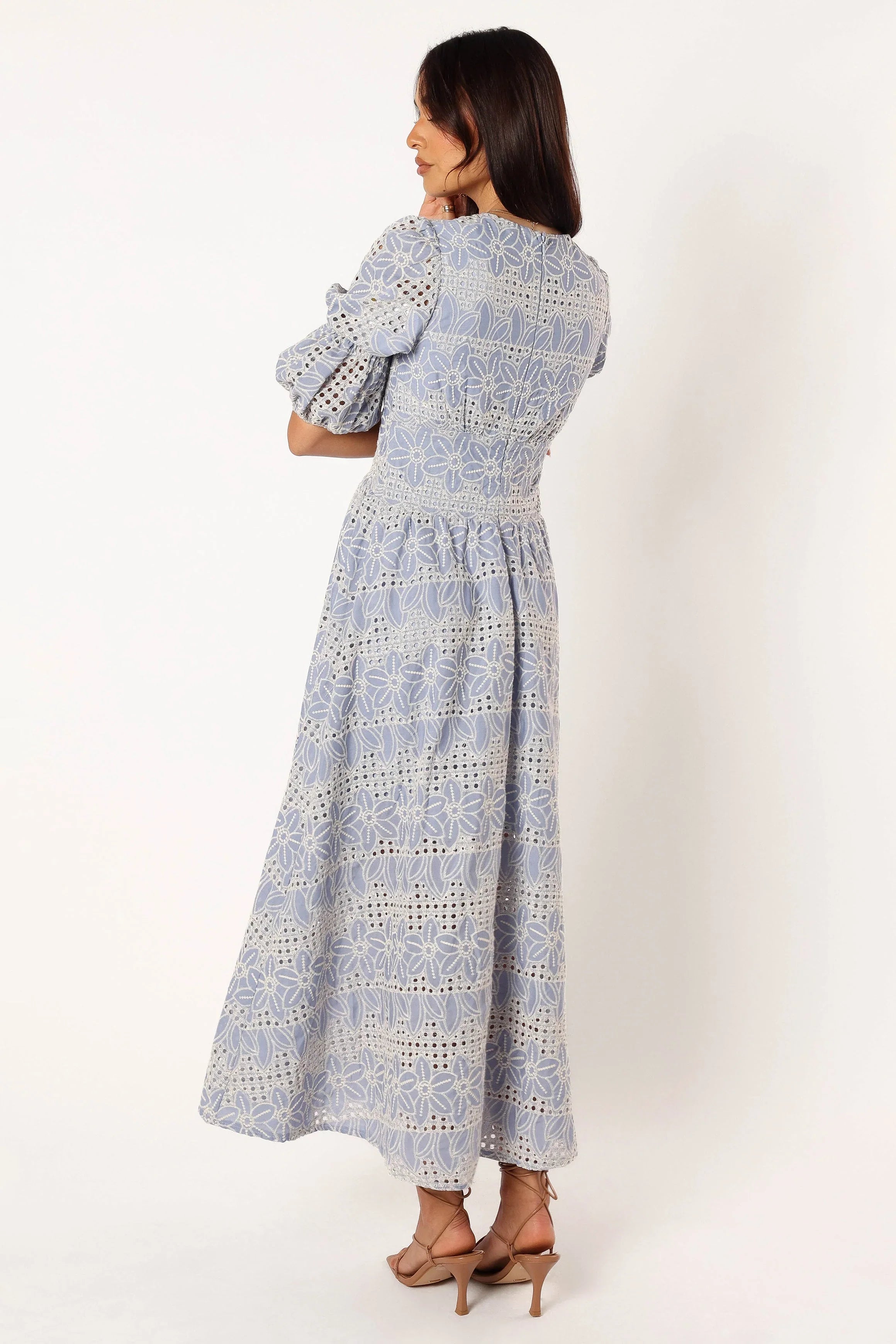 DETAILS The Tani Midi Dress in Blue is an absolute must-have for any trendy fashionista. This midi length dress features a deep v-neckline that adds a playful touch to the overall design. The button down closure allows for versatile styling options, while the 3/4 elasticised sleeves provide comfort and flexibility.