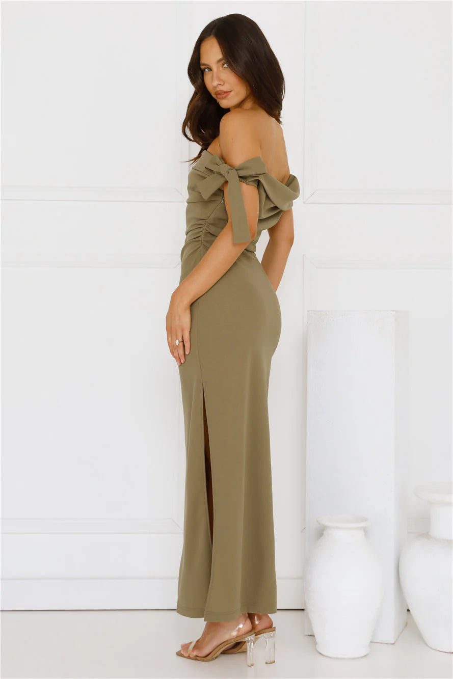 Step into elegance with The Luxe Party Maxi Dress. Featuring an off-the-shoulder design and a tie strap at the shoulder. Pair with strappy heels, statement earrings, and a sleek clutch for a show-stopping look.