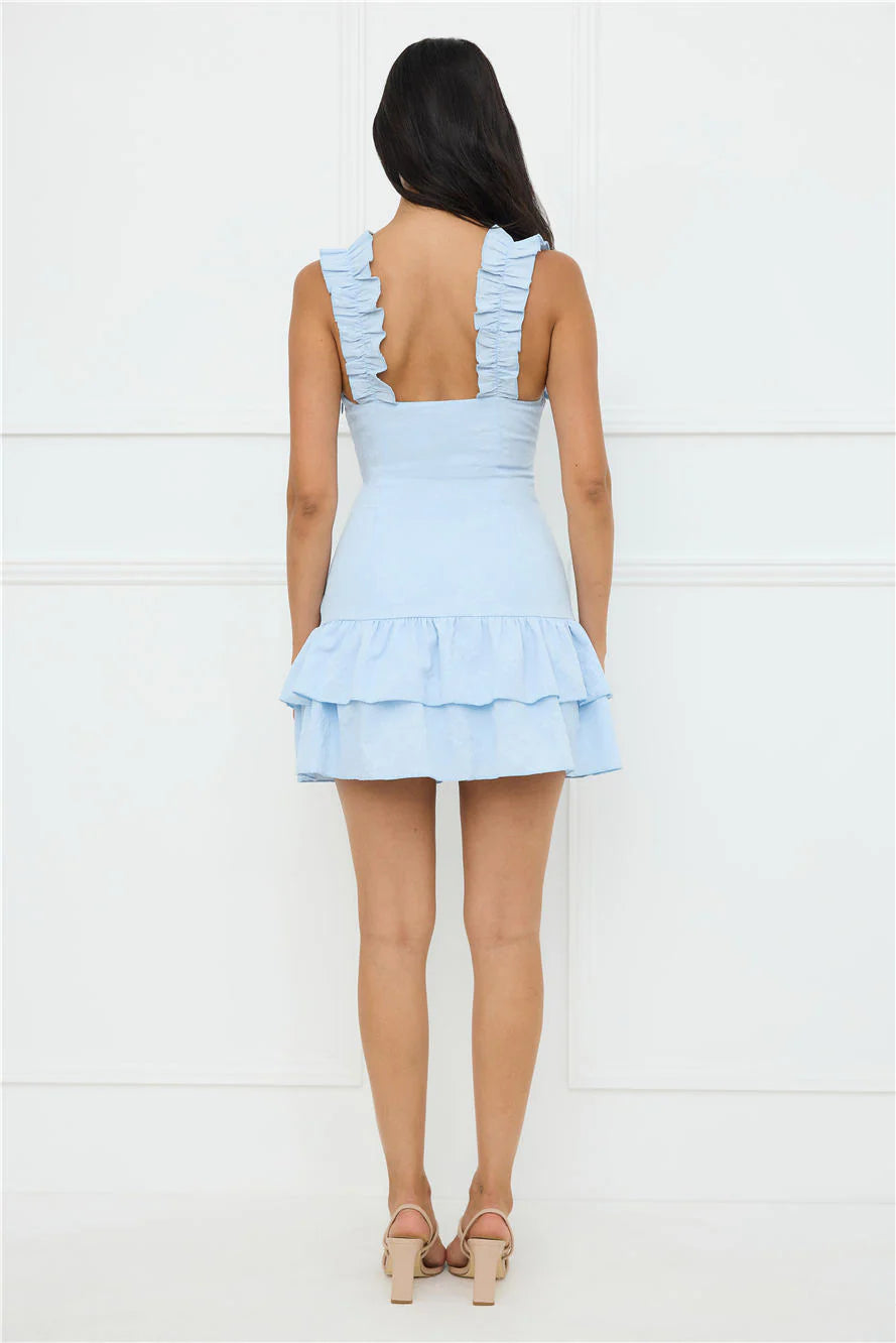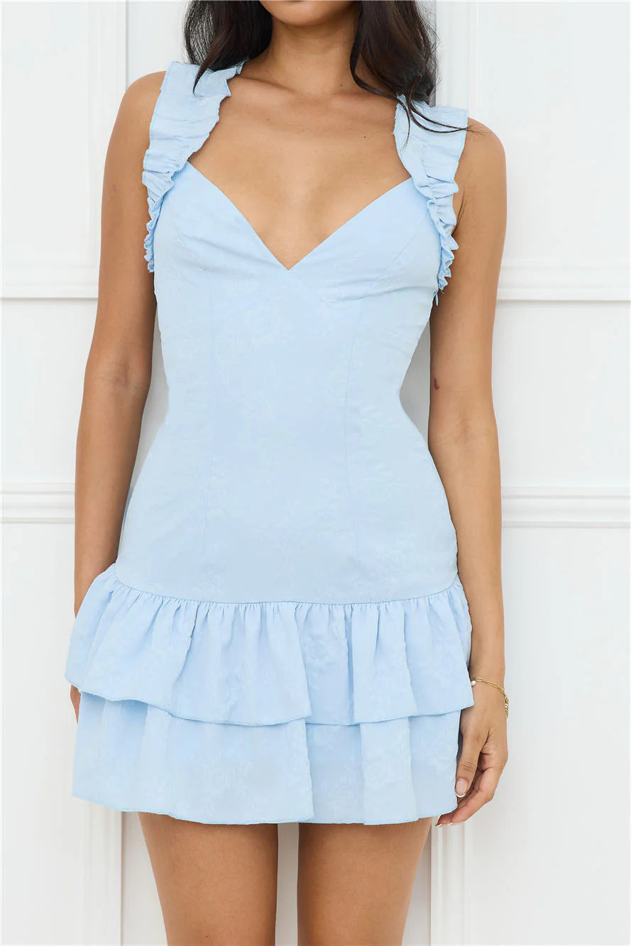 The 'fit of your dreams is here. The Your Wildflower Mini Dress features elastic frill shoulder straps and a tiered skirt that we love! Style with heels and curls.